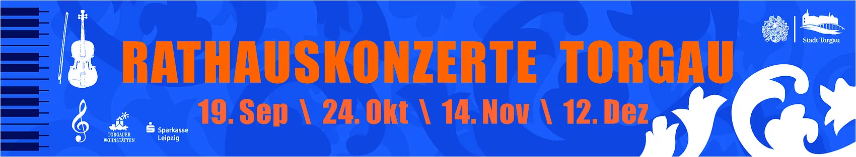 Die Herbstsaison 2025 startet am 19. September mit einem gewagten Streifzug durch die Welt der Opern. „Liebe, Verrat und andere Missverständnisse“ heißt das Programm des Bläserquintetts der Sächsischen Bläserphilharmonie. Am 24. September geben die Preisträger der diesjährigen Sächsischen Sängerakademie (Laurenzia Kampa, Simon Zeppenfeld, Lucas Reis) ihre Visitenkarte im Rathaus ab. Zu Ehren des 150. Geburtstags von Maurice Ravel steht dessen „Bolero“ am 14. November im Mittelpunkt der Aufführung der drei Pianisten Prof. Alexander Meinel, Angelika Maria Eysermans und Seonghyeon Leem sowie der Sopranistin Melanie Eggert. Ein Überraschungskonzert im Rahmen von Dornröschens Schlossweihnacht am 12. Dezember schließt das musikalische Jahr 2025 in Torgau ab. Weitere Details zu den einzelnen Konzerten folgen in Kürze.