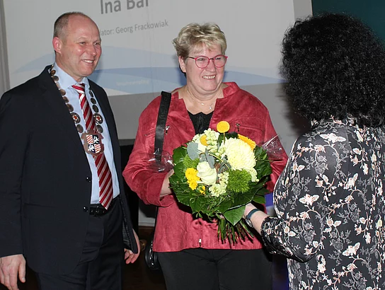 Mit dem Ehrenamtspreis gewürdigt wurde auch Ina Bär, Cellistin und Künstlerin, die zahlreichen Veranstaltungen in der Region einen würdigen musikalischen Rahmen verleiht. Zudem sammelt sie Spenden für sanierungsbedürftige Orgeln und hat die Musik für sieben Theaterinszenierungen des Johann-Walter-Gymnasiums komponiert.