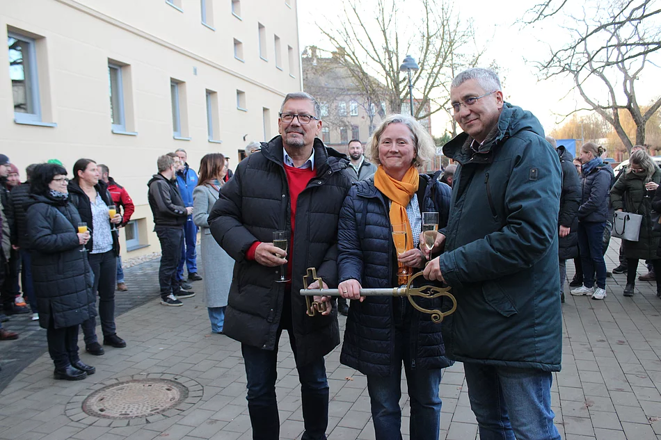 Mit der offiziellen Einweihung des sanierten Gebäudes in der Puschkinstraße 2 hat die Torgauer Wohnstätten GmbH (TWG) ein weiteres wichtiges Projekt der Stadtentwicklung erfolgreich abgeschlossen. An der offiziellen Einweihung am 18. Dezember nahmen unter anderem Oberbürgermeister Henrik Simon, TWG-Geschäftsführer Andreas Huth, zahlreiche Vertreter der beteiligten Bauunternehmen sowie Repräsentanten des künftigen Nutzers, des Evangelischen Kirchenkreisverbandes Torgau, teil.