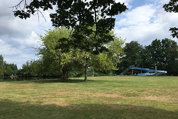 Auf 7.000 m² Liegefläche finden Sie Platz zum Sonnen oder zum Ruhen unter den Bäumen, während Ihre Kinder ausgelassen spielen. Im Teich befindet sich eine kleine Schwimminsel, zudem gibt es eine Wasserrutsche, ein Volleyballspielfeld, eine Tischtennisplatte und kleine Spielgeräte. Für die „Kleinsten“ wurde ein Nichtschwimmerbereich abgegrenzt. Ein Schwimmmeister des Aquavita ist während der Öffnungszeiten vor Ort und sorgt für Sicherheit und Ordnung.