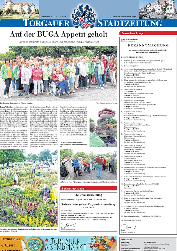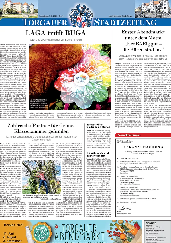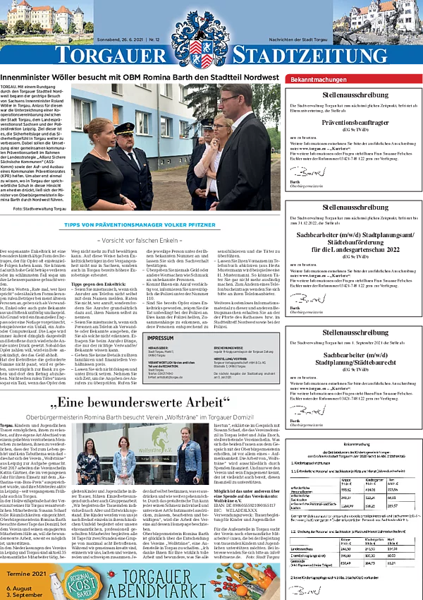 Bleiben Sie immer informiert und entdecken Sie vergangene Ausgaben der Torgauer Stadtzeitung.