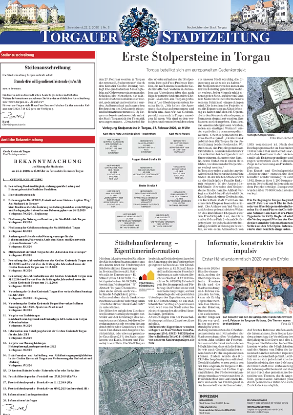 Bleiben Sie immer informiert und entdecken Sie vergangene Ausgaben der Torgauer Stadtzeitung.