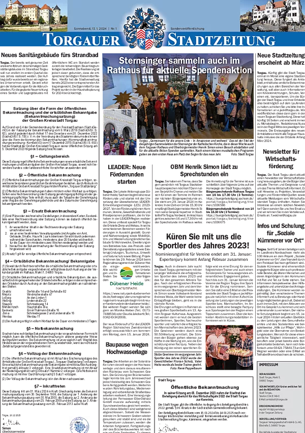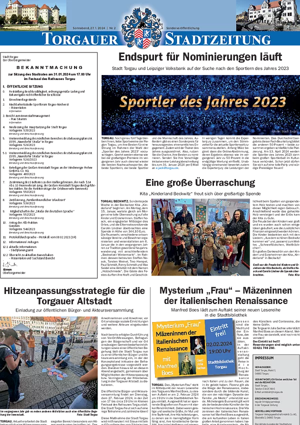 Bleiben Sie immer informiert und entdecken Sie vergangene Ausgaben der Torgauer Stadtzeitung.
