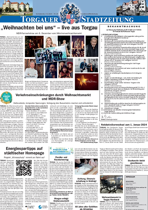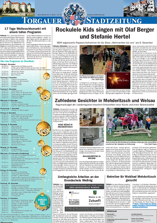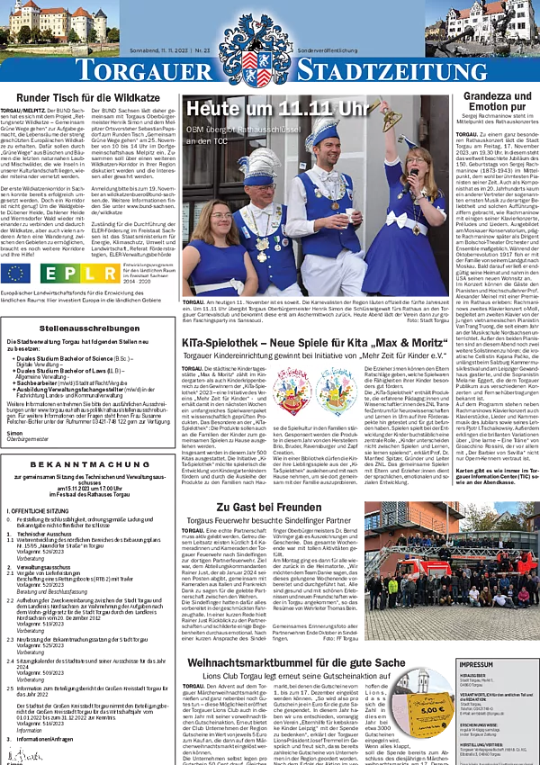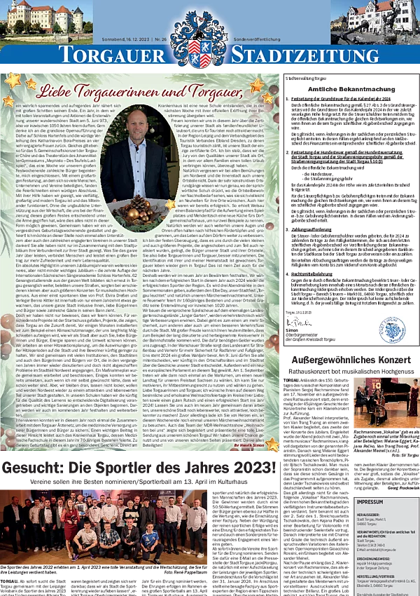 Bleiben Sie immer informiert und entdecken Sie vergangene Ausgaben der Torgauer Stadtzeitung.
